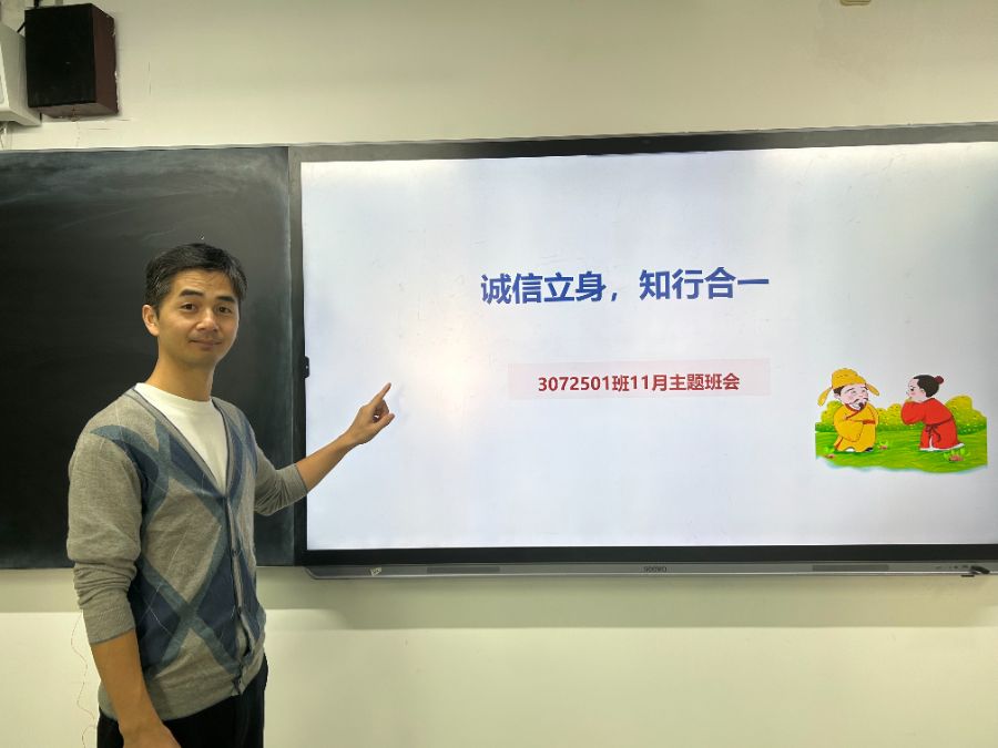 班会课上,我们3072501班在吴老师的带领下学习了关于“诚信立身,知行合一”的内容。