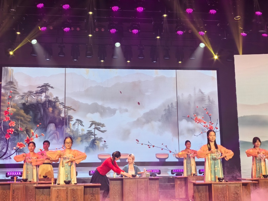 身着素雅茶服,执茶筅击拂茶汤,看着乳白的沫饽在盏中堆叠成精巧纹样,我仿佛置身宋代茶寮,与古人共品这盏雅韵。台下观众专注的目光,展演落幕时热烈的掌声,让我愈发笃定传统文化传承的意义。作为茶艺社的负责人,这场演出更让我看到了茶文化在校园里的生命力。