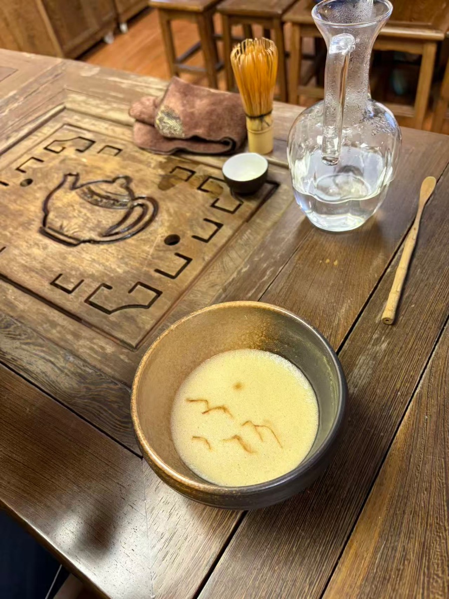 反复调试后,虽不及老师做的乳花持久匀净,却也有了几分模样。轻啜一口,茶香醇厚回甘,漫过舌尖的每一处味蕾。这场初体验,不仅让我学会了点茶的基础技法,更读懂了茶艺中“慢”的真谛——唯有沉下心来,专注于每一个细节,方能品得这份藏在青茗中的雅致。