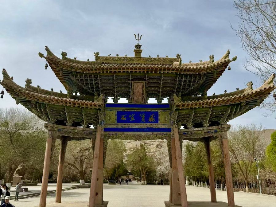 来到敦煌,一定要去莫高窟看一看。景区入口的牌坊古朴大气,“石室宝藏”四个字格外醒目。沿着道路往里走,崖壁上开凿着密密麻麻的洞窟,远远望去十分壮观。莫高窟的壁画和雕塑是这里的灵魂,色彩绚丽、造型精美,飞天的形象灵动飘逸,每一幅作品都凝聚着古代工匠的心血,让人真切感受到中华传统文化的博大精深。