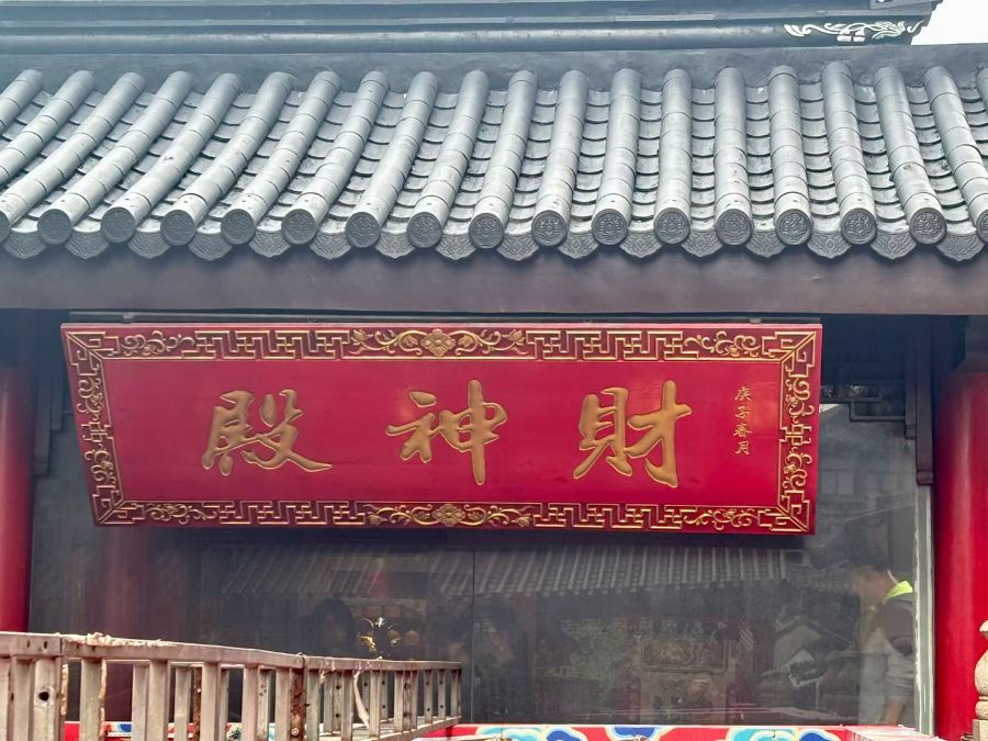寺庙里的建筑都很有特色,灰瓦红墙,雕梁画栋,财神殿的牌匾红底金字,庄重又喜庆。走在青石板路上,看着周围的古建筑,听着偶尔传来的钟声,整个人都安静下来,能感受到传统建筑的精致与韵味。