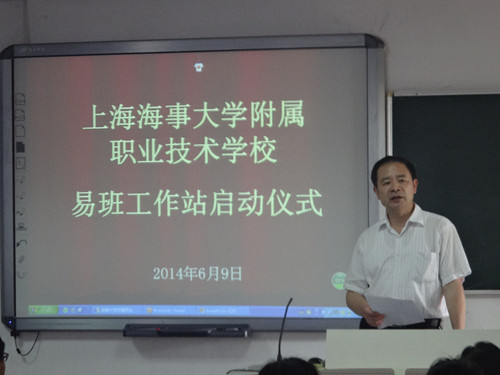 2014年6月9日中午12:20上海海事大学附属职业技术学校在学校弘文楼微格教室举行了海大职校易班工作站启动仪式。参加此次启动仪式的有学校巩加庆副校长,政教处马海俐主任、李梅副主任,各班班主任老师,易班工作站成员以及13级各班易班班长。