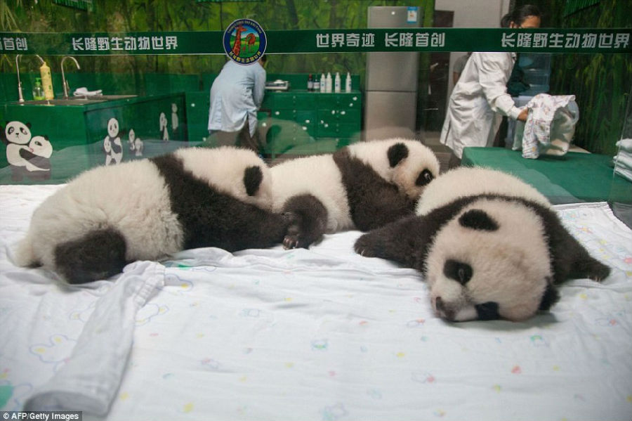 三胞胎是在7月29日降生的,雌宝宝最先出生,两只雄宝宝随后降生,整个分娩过程不到4小时。3个小家伙降生时,一些兽医曾指出它们全部存活的可能性几乎为零。现在,三胞胎用事实推翻了兽医的预测,不仅已经过了百天并且非常健康.5日起,大熊猫三胞胎将与游客们见面。它们轮流与妈妈生活在一起,每次5天。如果能够健康成长,它们可以一直留在妈妈身边。目前,3个小家伙还没有取名字,长隆野生动物世界正向公众征集名字.