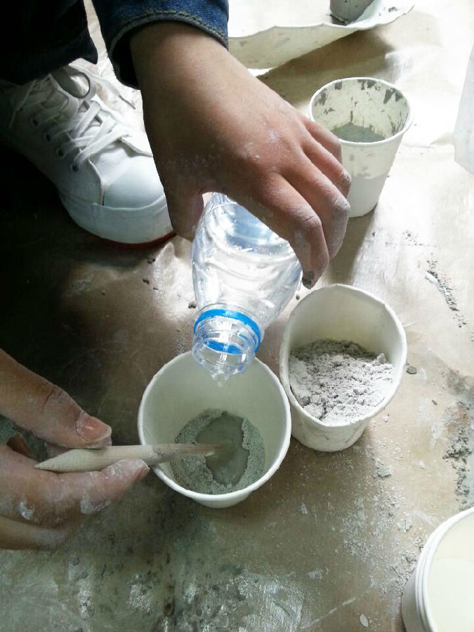 第三步:将石膏粉与清水进行充分搅拌