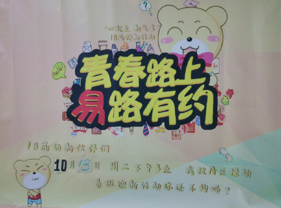 我们易班在迎新后还会进行招新,为易班注入新鲜血液,也完成了新生们参与易班的梦想。我们一定会聆听同学们的建议与评论,不断改进、不断提高,为卫校全体师生带来欢乐活力,让可爱的易班熊充满校园的每个角落,扎根在同学们的心里。