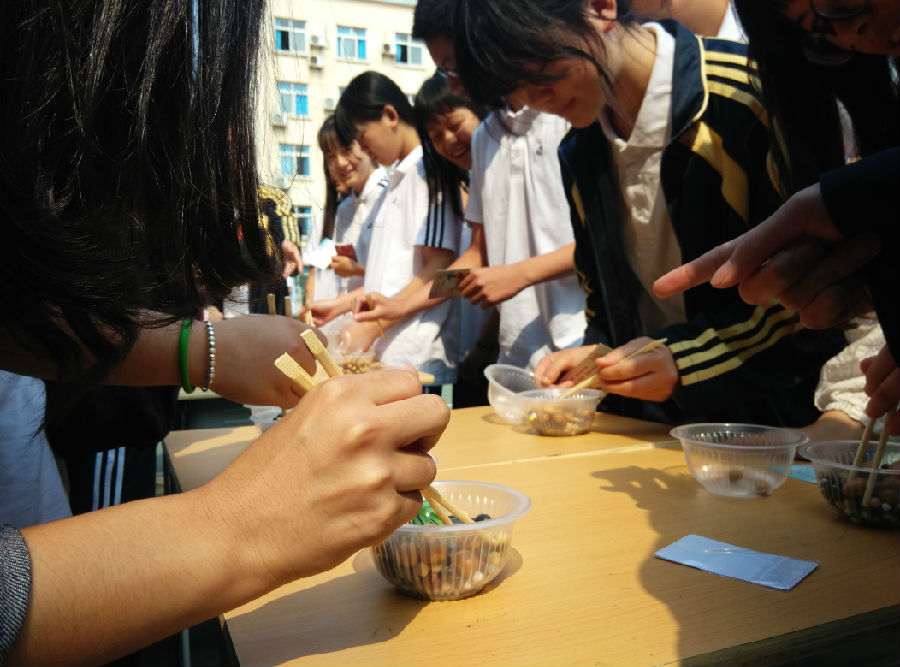 学校易班工作站近期举办了大型游园会活动,6个游戏中,我最喜欢的是:“吃饭睡觉夹豆豆”。夹豆豆非常锻炼手部力量和手眼的协调能力,在游戏的过程中可以领悟到很多东西。